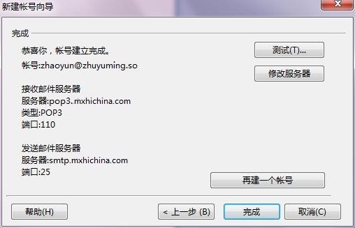 第四步: 账号建立完成,可以进行邮件的测试。点击“完成”后即可开始使用邮箱!