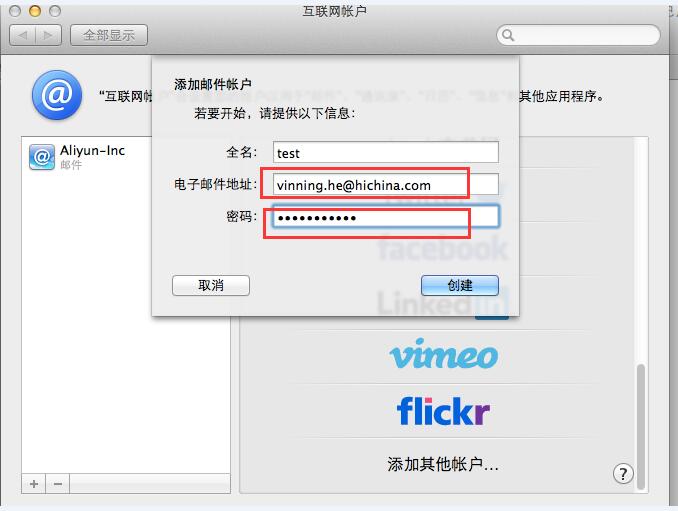 以上所有信息填写完成后,点击创建即可完成帐号的配置.