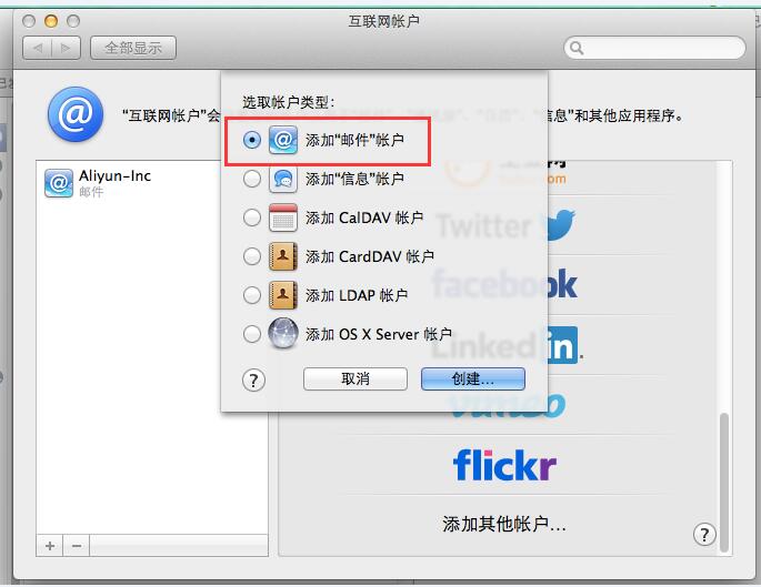 添加”邮件“帐号