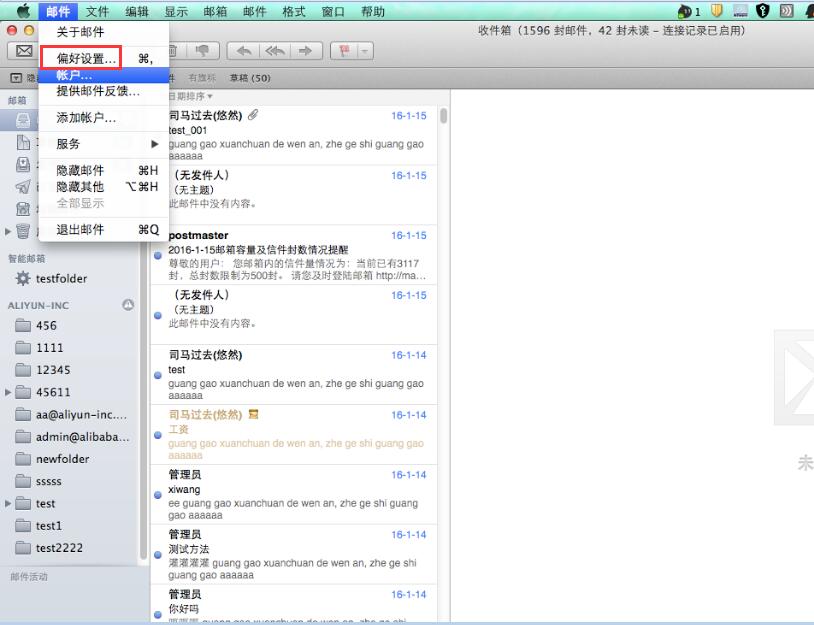 以上所有的配置完成后,为了更好的使用体验,建议可以重启一下MAC MAIL.即可进行邮件的收发使用.