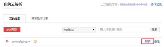 3)解析记录已自动生成,您可以点击左侧导航的【我的云解析】,进入万网云解析进行查看;