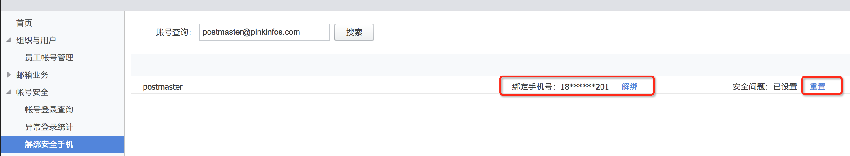 如果安全问题不记得答案 ,手机号码又不能用了,就需要公司的邮箱管理员登录postmaster到帐号管理,找到此帐号编辑里面重置帐号密码.  并且提醒管理员可以到帐号安全里面把安全问题与手机号码解绑,重新登录重新绑定即可.